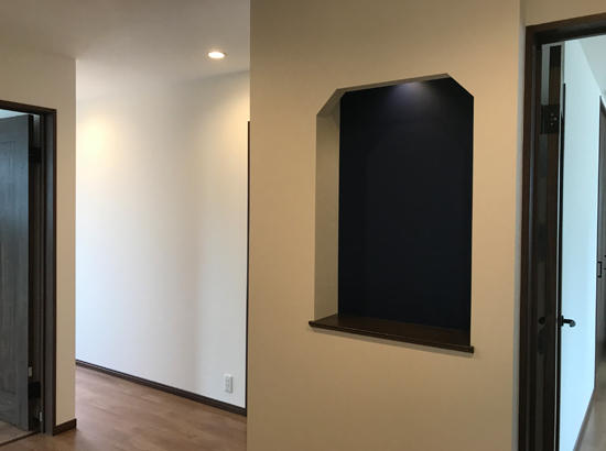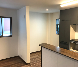 > 新築施工事例 > 都会に佇むモダンテイスト住宅 都会に佇むモダンテイスト住宅 注文住宅 都会に佇むモダンテイスト住宅 フォトギャラリー ※画像をクリックすると拡大します。 東にあたる正面の外壁には、ケイミューのエクセレ―ジ親水15を貼りました。存在感が物凄く出ています。 門扉には電気錠つきのLIXILのジオーナを採用。セキュリティー面には気を使い選定いたしました。 1階にあるガレージは、車が4台も止めれる広々スペース。親御様の仕事の車も止めるとか・・・ そしてガレージについているシャッターは三和の威風動々。木目調が高級かつおしゃれ感を出しています。 こちらは門扉を抜け2階へ続く階段までのポーチ。ガレージにも光が入るようFIX窓を採用しました。 玄関へと続く階段。両サイドにあるサイディングが豪邸に入るかのような雰囲気を出しています。 先ほどの階段を見下ろしたところです。足元を照らす照明がなんともよい味を出しています。 いざ玄関の扉を開けると、正面には大容量収納スペースを設置。掃除道具もしまえていつまでも綺麗に。 玄関を抜けるとリビング、洗面脱衣室、トイレ、3階への階段が見えてきます。実に生活しやすそうな動線ですね。 キッチンへの戸を引くとなんとも見晴らしのよいキッチンスペース。毎日の料理も楽しみの一つになりますね。 キッチン本体はLIXILのリシェルを採用。こちらはお施主様のお気に入りのキッチンになります。 コンロの奥に見える棚は、調味料などがおけるスペース。監督さんのアイデアで生まれました。 広々としたリビングは、開放感あふれる空間です。家に帰るのが楽しみになりますね。 リビングに貼っているこちらは、エコカラットと思いきや実はサイディングを貼っています。 和室入口の建具には格子戸を採用。リビングから入る癒しの空間の仕切りにもってこいですね。 高級感を演出する為に、床の間内にダウンライトを設けました。 2階のトイレには、アラウーノを設置。壁紙もアクセントとして一面だけ柄入りのクロスを貼っています。 黒と白を基準としたユニットバスも、高級感が出てきますね。 3階へ通じる階段を上がった正面にも、小物などをおけるニッチを造作しました。 洋室から広がるバルコニー。ここはBBQなどができるほど広々とした空間になっています。 施工例データ 構造 鉄骨造 延べ床面積 257.66㎡(77.94坪) 敷地面積 140.65㎡(42.54坪) ←前の記事へ 次の記事へ→ お役立ち ▼リフォームメニュー リフォームメニュー リフォーム費用 施工事例 キッチンリフォーム 浴室リフォーム トイレリフォーム 収納リフォーム 古民家リフォーム お客様の声 1dayリフォーム 特別限定企画 ▼注文住宅メニュー 注文住宅メニュー 施工事例 健康住宅 狭小住宅 省エネ住宅 お客様の声 ▼その他のメニュー リフォームの流れ 住まいのメンテナンス 万全のアフターフォロー ご相談から引き渡しまで よくあるご質問 お支払いについて 民間建築事例 公共工事事例 橋本工務店ブログ 協力業者募集